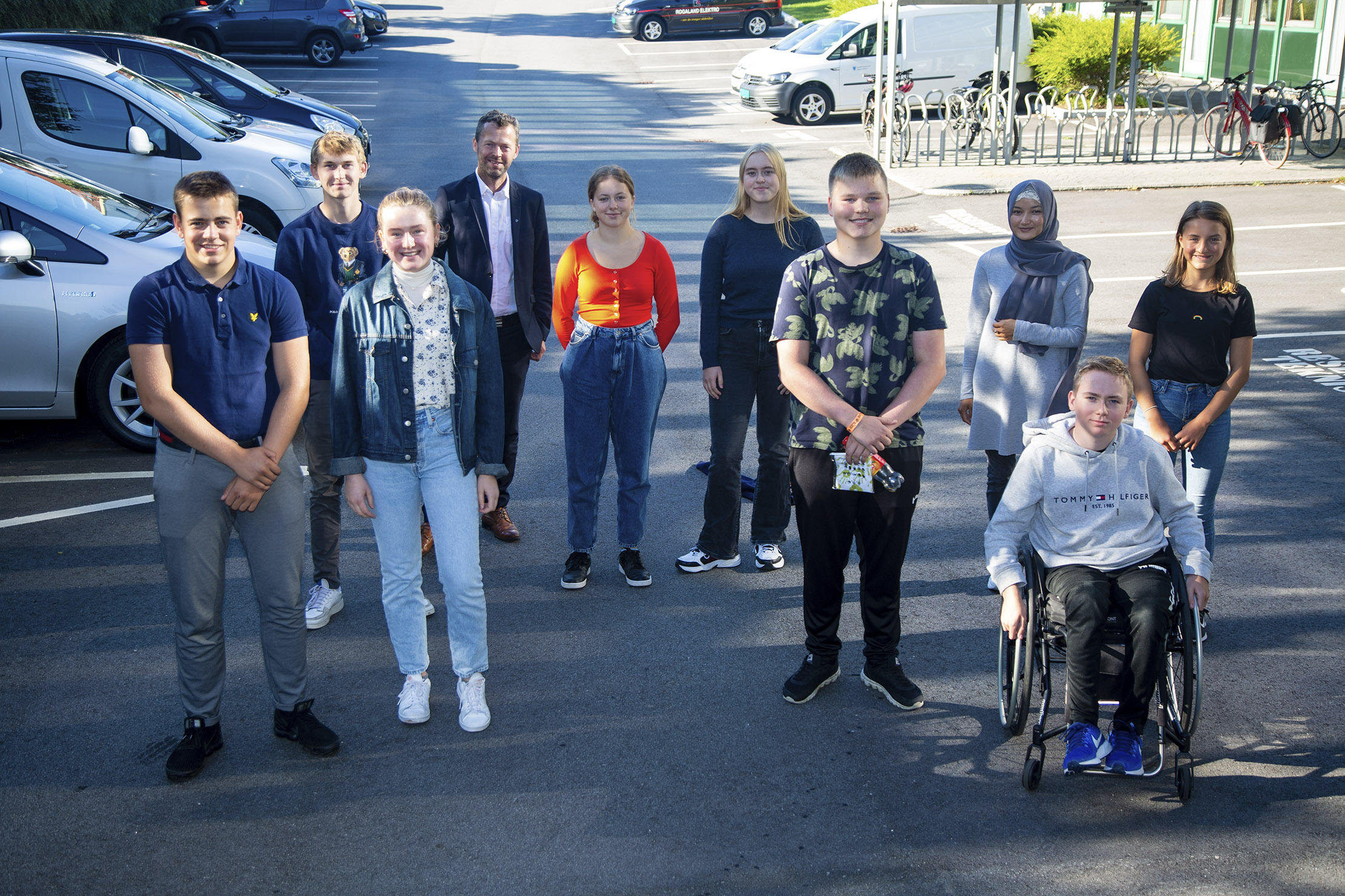 Bildet: Her er det første ungdomsrådet samlet, sammen med ordfører Jarle Bø. Fra venstre: Sivert Stapnes Goa (nestleder), Magnus Boge, Maria Førsvoll (leder), Jarle Bø, Ema Dielininkaitene, Veslemøy Viste Brannan, Emil Helmikstøl Nedrebø, Shukria Ahmadi, Erlend Jørpeland Vatland og Sofie Bjørnestad Viste.